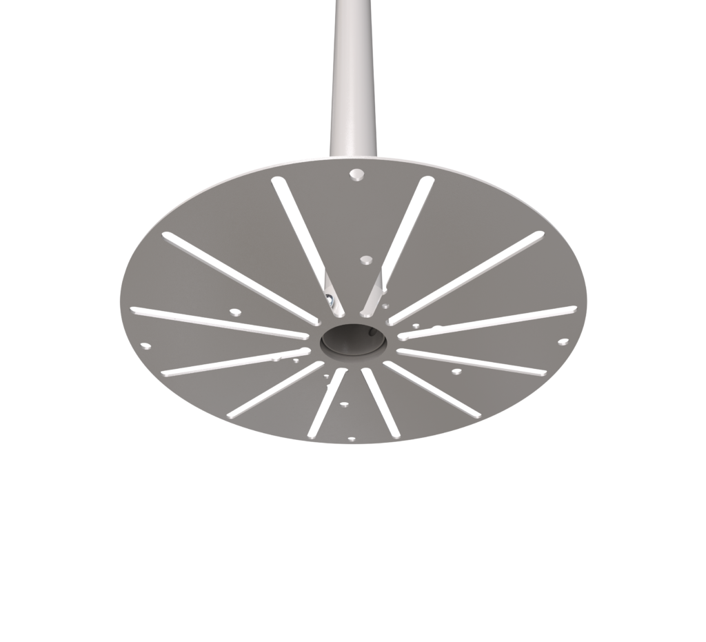 • Integrated cable management allows cables to pass through the centre of the pole to a screen and out through the top or side of the ceiling mount