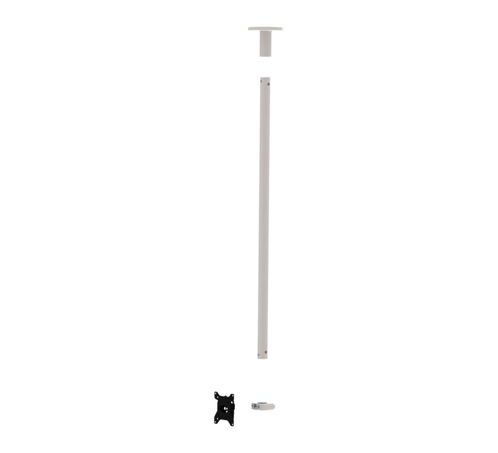 Mounts a small flat screen to the ceiling