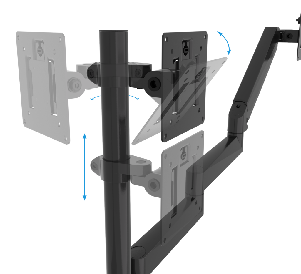 • Full motion adjustment with easy tilt, swivel and height adjustment