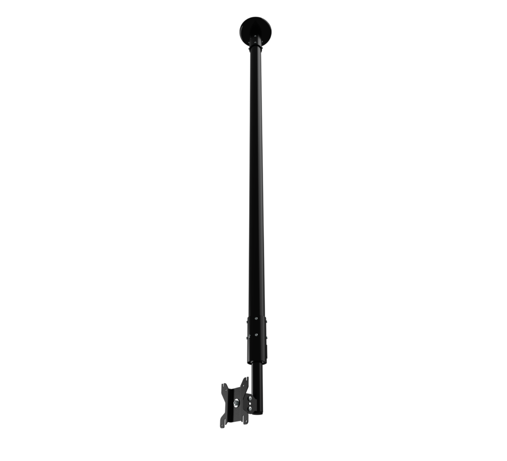 • Mounts screens from the ceiling, floor, or desktop