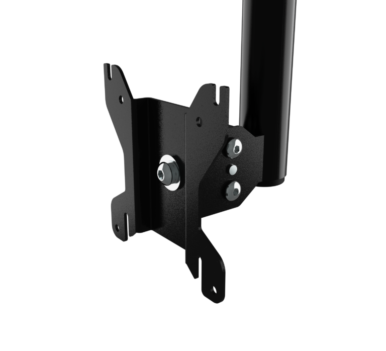 • Mounts screens from the ceiling, floor, or desktop
