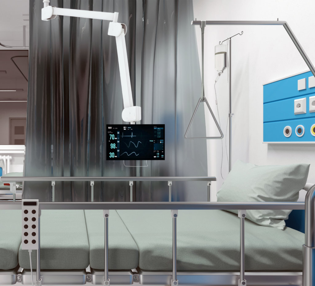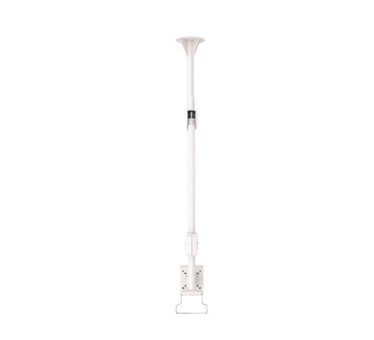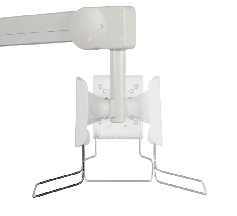 Designed for flat screens up to 28", this full motion ceiling mount is ideal for mounting above and beside hospital beds. Supplied with an optional handle for easy screen positioning and a built-in gas spring system that offers simple height and distance adjustment. The space saving design enables the mount to be folded flat when not in use.