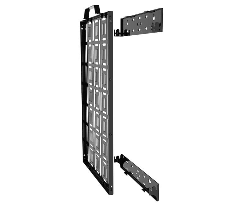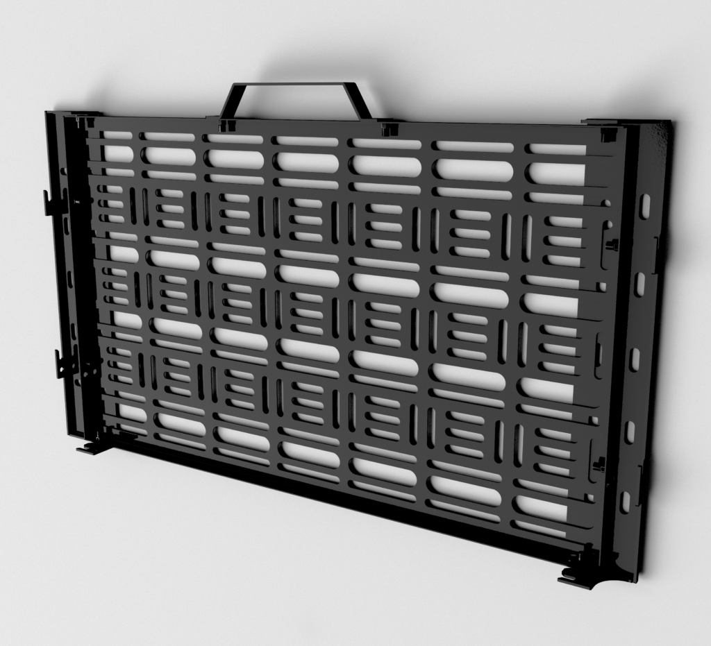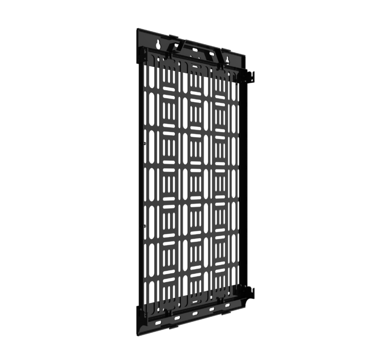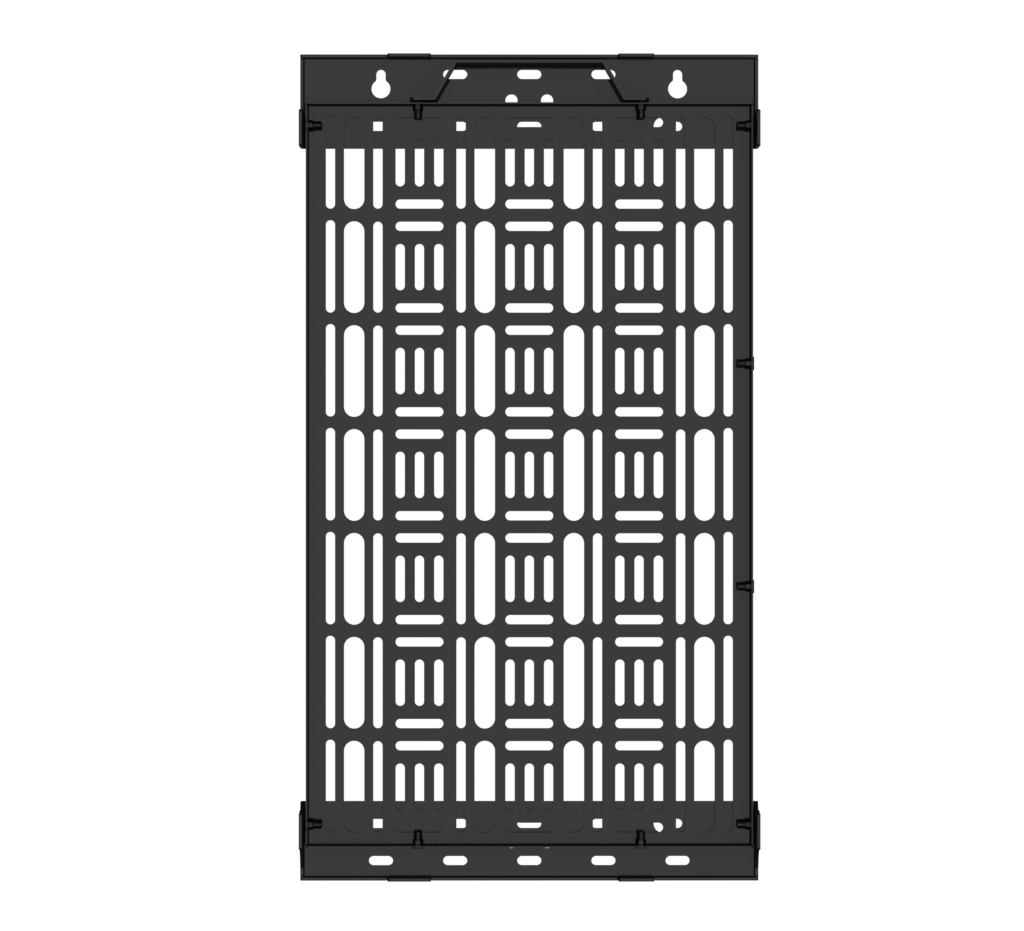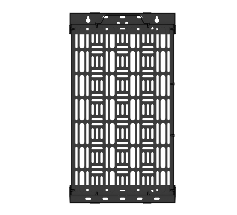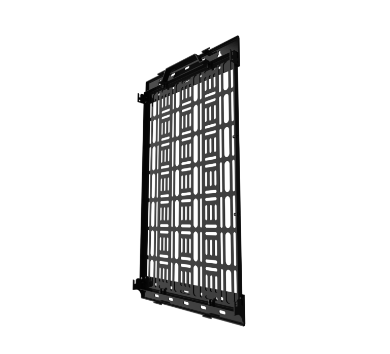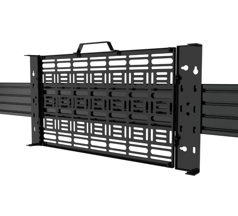 Hook-on functionality, allows the tray to be accessed without screen removal