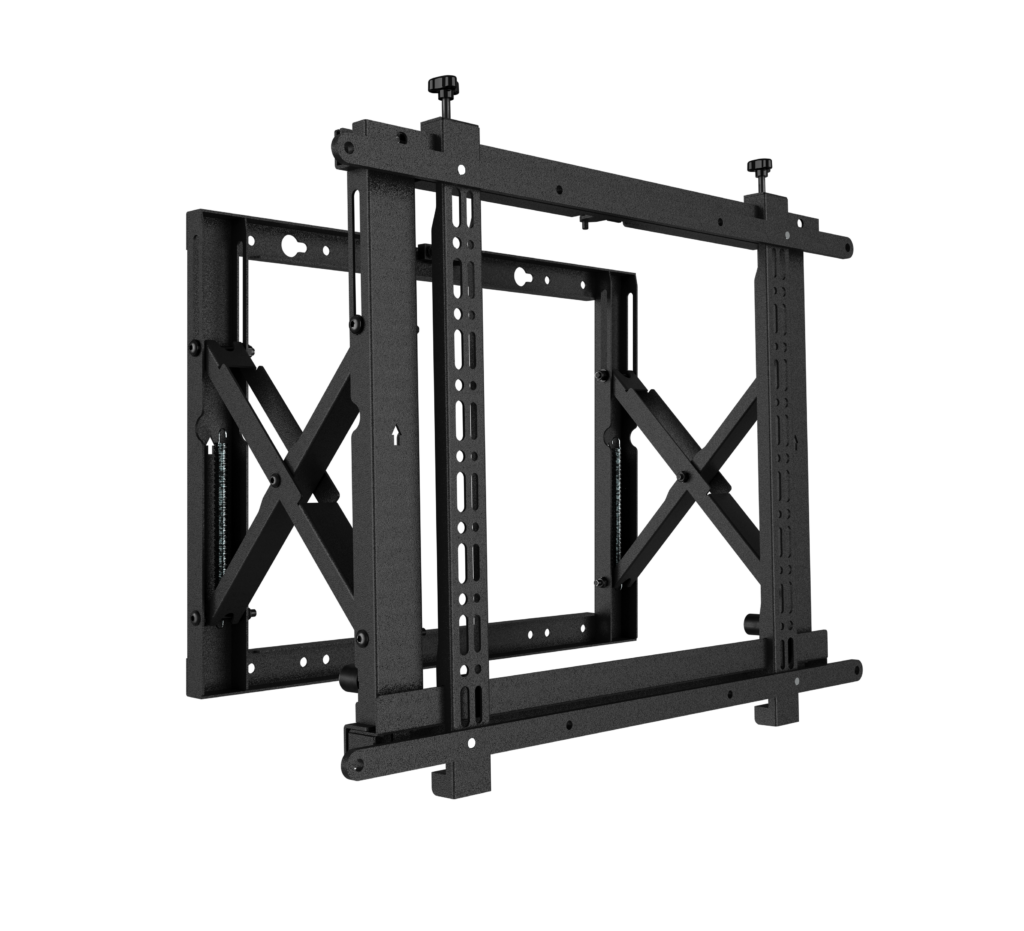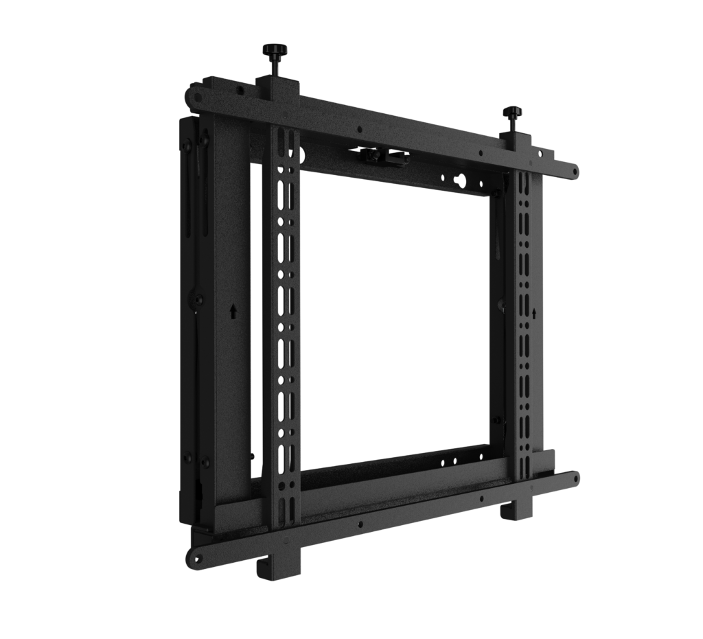 Designed to make videowall installations as simple as possible, this modular videowall mount can be used to create unlimited videowall configurations in both landscape and portrait format. The BT8301 has a low profile design which is ideal for mounting into walls with a shallow recess, a pop-out system enables a quick and easy access to the rear of the mounted screen for servicing and maintenance and +/-4mm micro adjustment makes accurate screen alignment quick and easy.