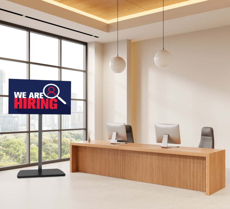 • Universal design suitable for mounting screens in a landscape or portrait orientation